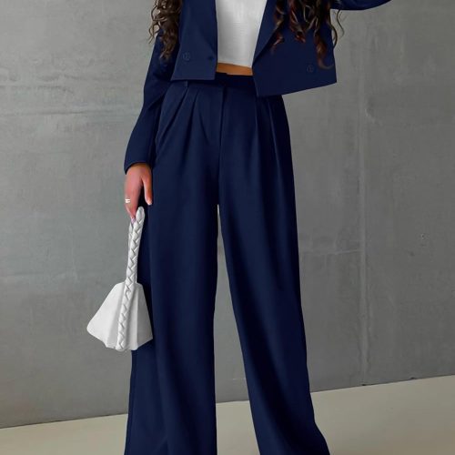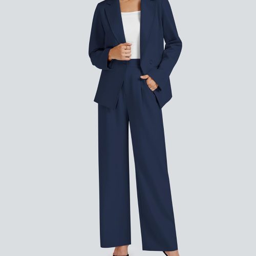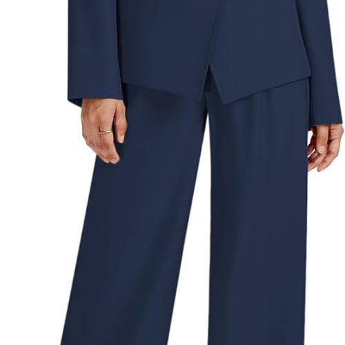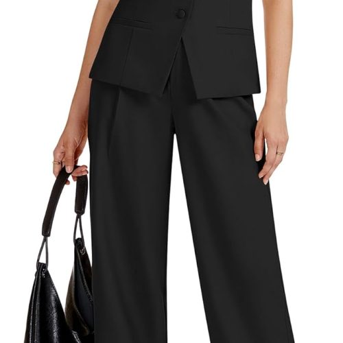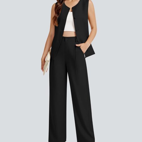 Women 2 Piece Blazer Outfits Sleeveless Crewneck Vest Wide Leg Pantsuit 2026 Dressy Casual Work Sets
