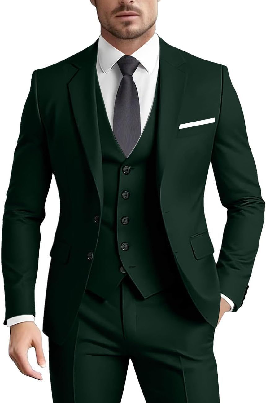 Men’s Suit 3 Pieces Slim Fit Formal Business Wedding 2 Buttons Blazer Vest Pants Set Tuxedo