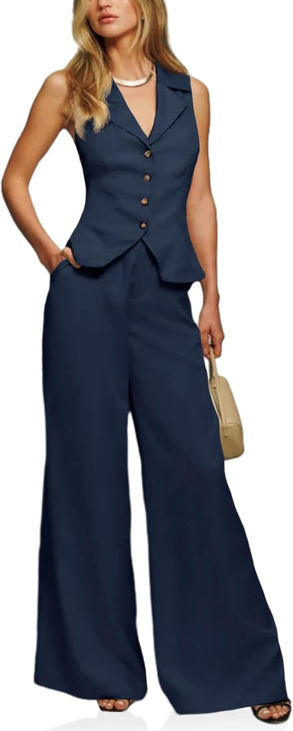 - Vest Sets: Elevate your summer wardrobe with the vest and pants set, featuring a chic blend of style and sophistication. This summer 2-piece outfit includes a button-front V neck crop blazer vest and wide-leg pant, suit for a dressy work or casual look
