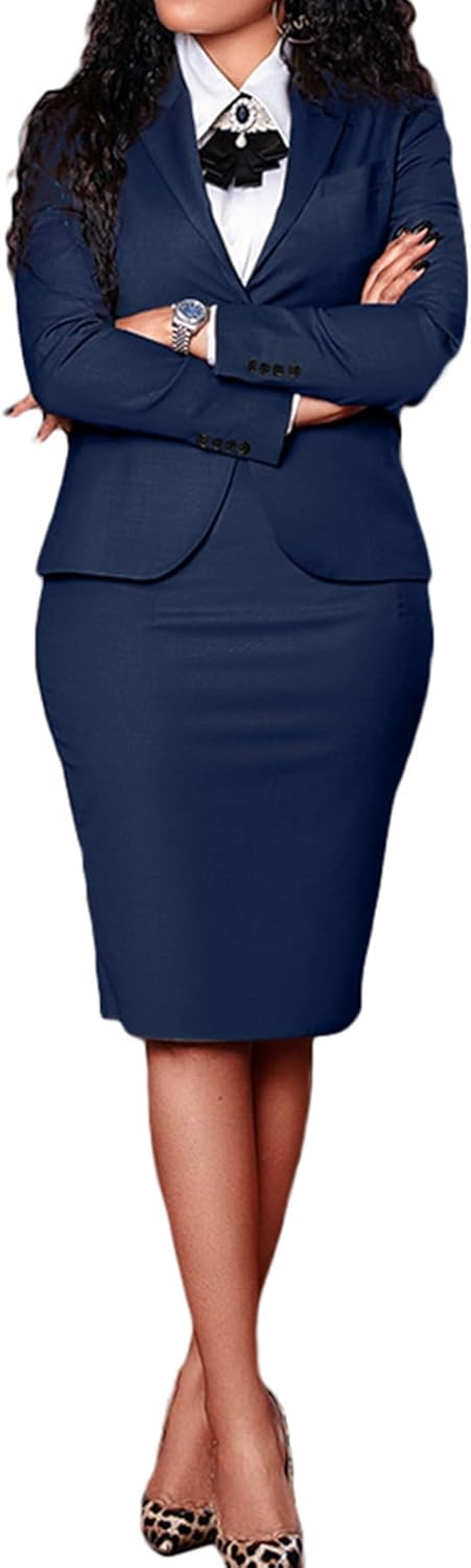 Women’s 2 Piece Suit Skirt Set Business Office Work Outfit Blazer Jackets Midi Pencil Skirt Suits Plus Size